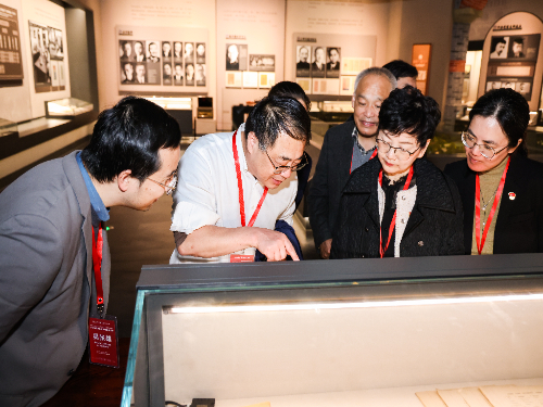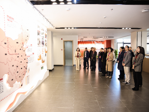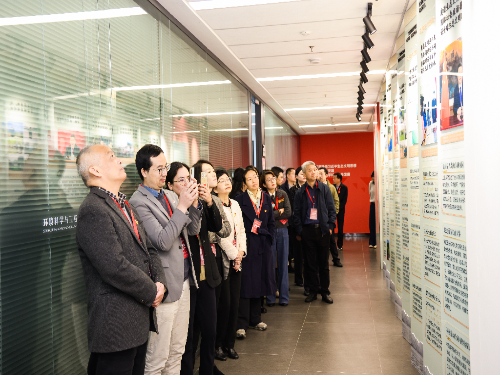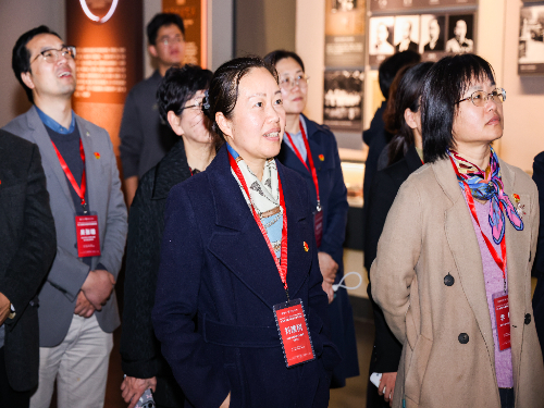 当天下午,参会嘉宾来到在线影院 校史馆,了解学校自建校以来的发展历程和取得的成就,感受交大始终与国家和民族命运紧密相连的责任担当。在讲解员的带领下,参会嘉宾认真聆听介绍,积极交流学习体会,在重温党史和上海交大校史中坚定红色理想信念,凝聚绿色发展共识。