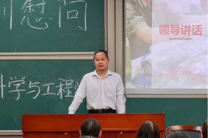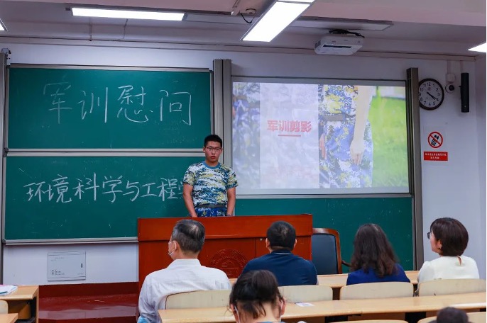 9月3日下午,在线影院 院长耿涌,副院长刘萍,党委副书记张洋,年级导师张礼知教授,团委书记于爱涛一同到教室看望和慰问环境科学与工程2020及2022级参训师生。活动由25连副指导员袁兆国主持。