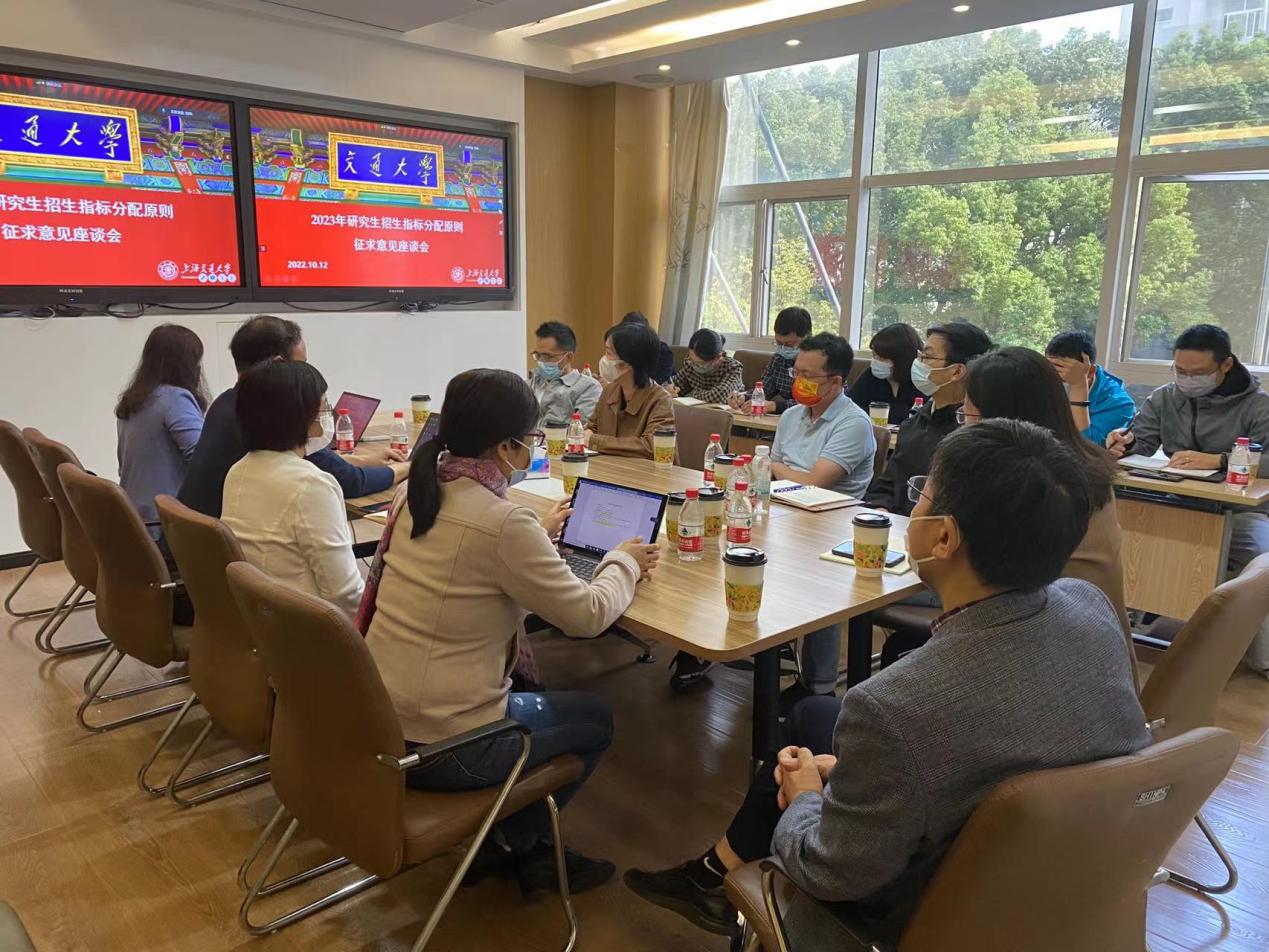 刘萍介绍了学校关于研究生招生、培养工作的指导意见和最新政策,以及学院对于研究生导师岗位要求、研究生培养要求、研究生招生指标分配原则等,与会教师就具体工作细节进行了深入交流和讨论。胡薇薇指出,研究生招生和培养工作,特别是招生指标分配工作关乎学院教师切身利益,希望通过座谈会的方式,面向各教学科研团队不同年龄段和不同职称岗位的教师代表,广泛征求意见和建议,做到信息互通互达、形成共识。耿涌强调,学校的研究生招生和培养工作导向,在于吸引优质生源、引导学生高水平学术就业和重点岗位就业,并向优质师资倾斜。曹心德指出,在学院研究生招生和培养工作中,还应进一步按照学校指导意见关注并完善负面清单。