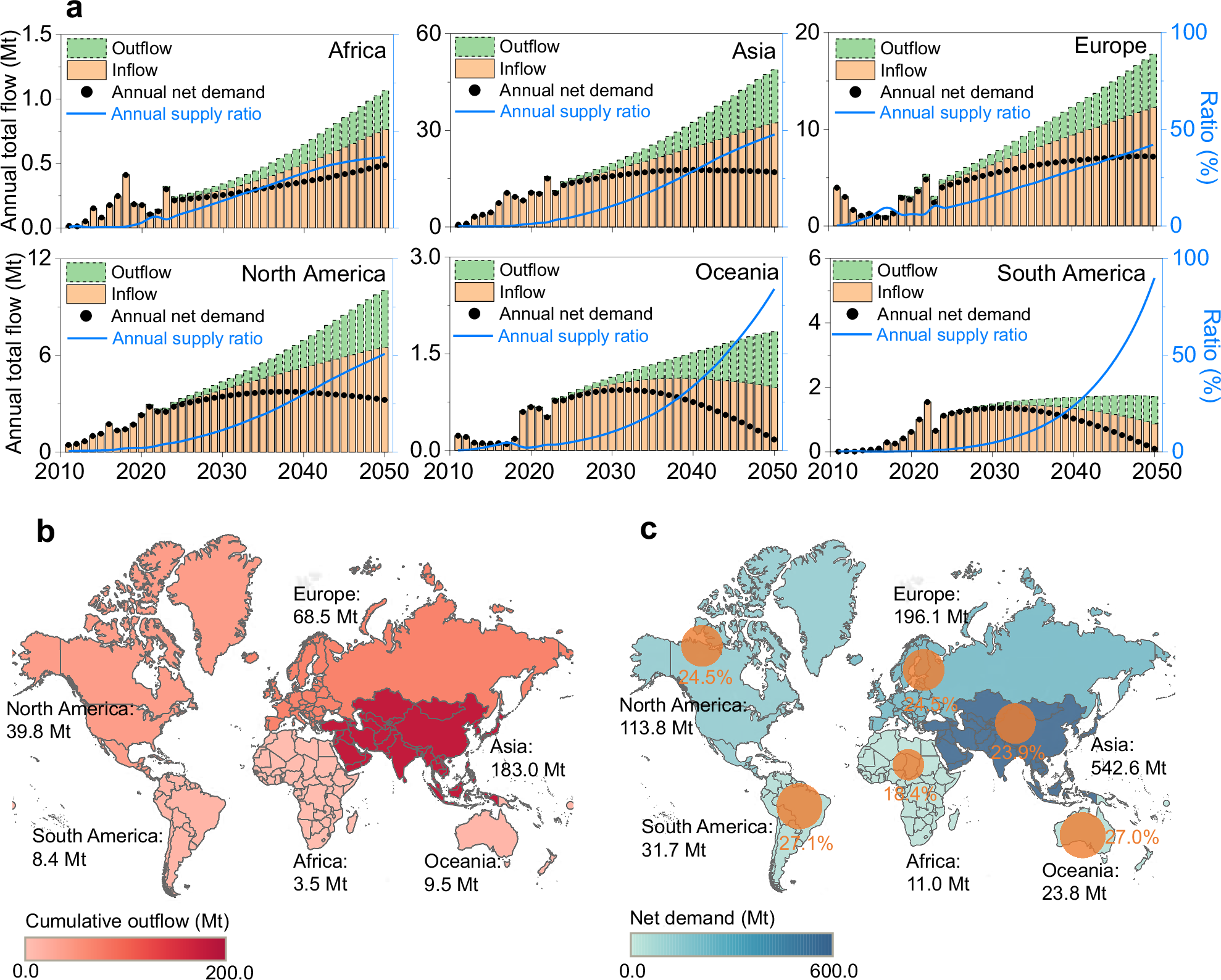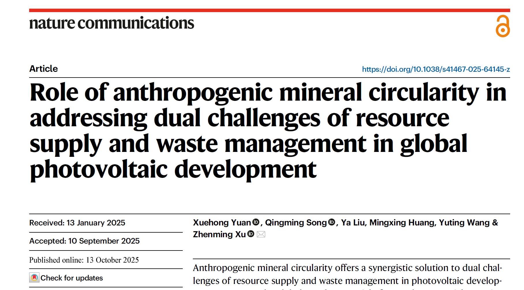 近日,在线影院 许振明教授团队在《Nature Communications》在线发表了题为“Role of anthropogenic mineral circularity in addressing dual challenges of resource supply and waste management in global photovoltaic development”的研究成果。该研究从全球尺度定量揭示了在人类能源转型过程中,人为矿物循环(Anthropogenic Mineral Circularity)在缓解光伏产业发展所面临的资源短缺与废物管理双重挑战中的关键作用。论文第一作者为在线影院 2022级博士生袁学宏,许振明教授为论文唯一通讯作者。本研究工作获得国家重点研发计划资助。