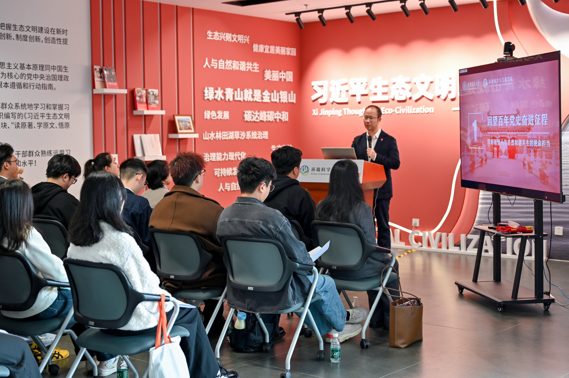 郑浩以“坚守绿色初心 勇担时代使命”为题讲授专题党课,为即将奔赴新征程的毕业研究生党员上了一堂思想深刻、内涵厚重的“毕业党课”。他带领毕业生党员们系统回顾了百年党史中生态文明思想的演进脉络,深刻阐释了全国两会审议通过《中华人民共和国生态环境法典》的里程碑意义。他强调,2026年《生态环境法典》的颁布实施,标志着我国生态法治建设迈入法典化新阶段,为环境事业发展提供了坚实制度保障,也为青年学子指明了专业方向。结合百卅交大的精神传承,他讲述了钱学森学长“山水城市”理念的前瞻性,以及以孔海南教授为代表的三代治水人扎根洱海二十载、守护“高原明珠”的坚守历程。他指出,交大人始终以“科技报国”为己任,用实干诠释“绿水青山就是金山银山”的深刻内涵,希望毕业生们传承这份坚守与担当。围绕树立正确政绩观,他强调,环境人的政绩观不仅关乎个人职业选择,更承载着人民群众对美好生活的向往,并叮嘱毕业生党员真正的政绩不在于表面光鲜,而在于生态改善的实绩和群众的口碑。最后,他寄语毕业生党员:要胸怀“国之大者”,坚守家国初心,做有格局的交大人;要秉持实干底色,永葆奋进姿态,做有担当的奋斗者;要守住初心底线,永葆进取之心,做有风骨的青年人,在新时代生态文明建设征程中书写属于交大人的时代答卷。