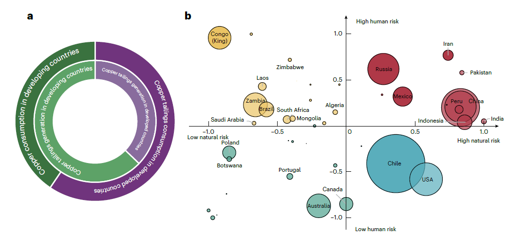 图3. 发达国家与发展中国家铜消费与铜尾矿产生占比,以及主要铜生产国尾矿库风险