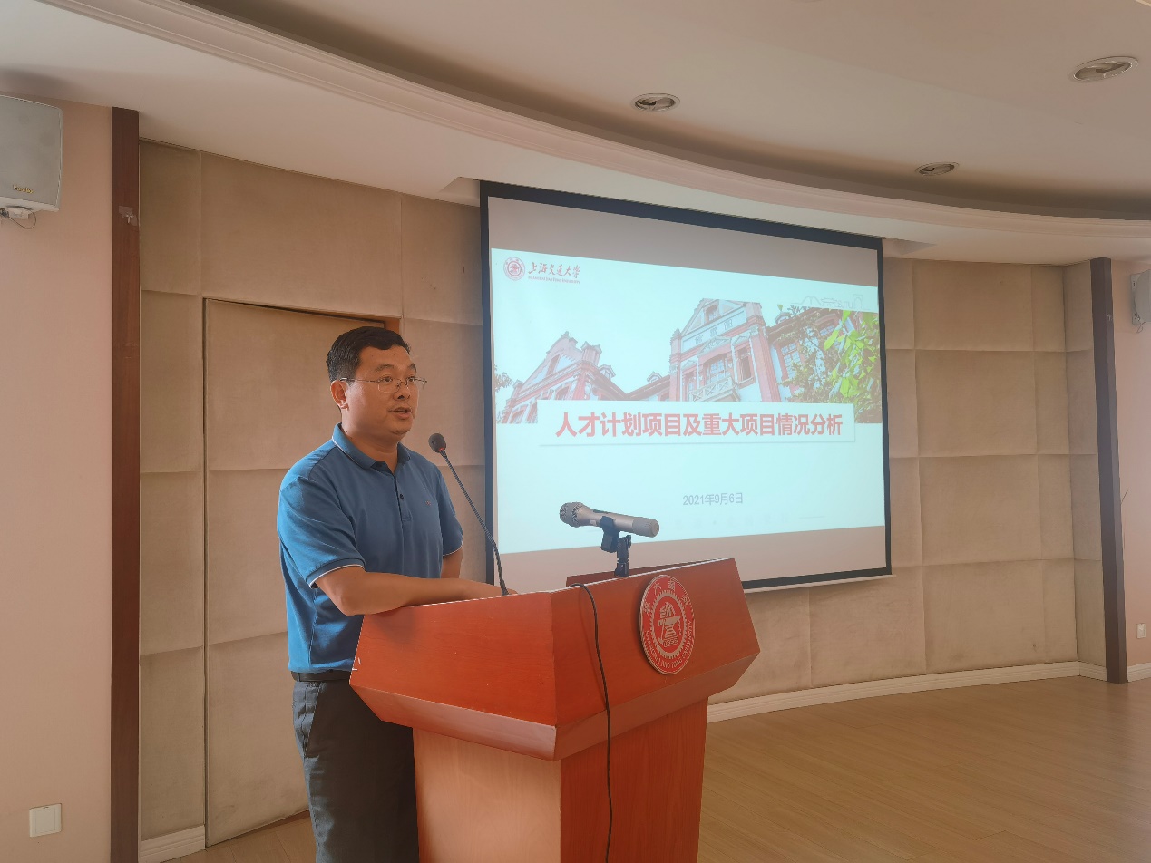 副院长赵一新聚焦人才计划项目及重大项目情况,总结回顾了学院历年科技类人才计划项目入选情况、近三年申请及资助情况和近五年重要项目情况,分析了项目申报成功与失败的原因,提出了应对方案和建议,为学院人才计划项目及重大项目建设谋划布局。
