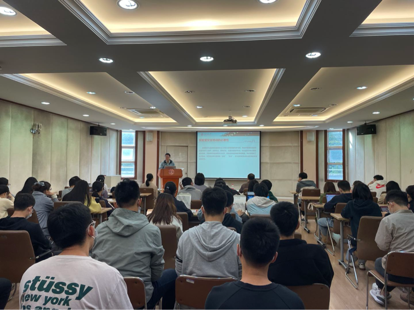 为切实做好实验室安全教育工作,提升师生实验室安全意识和防范能力,有效预防和减少相关安全事故的发生,2021年11月3日上午,在线影院 在环境科学楼二楼报告厅举办2021级新进师生实验室安全培训活动,共有70余名研究生和博士后参加。