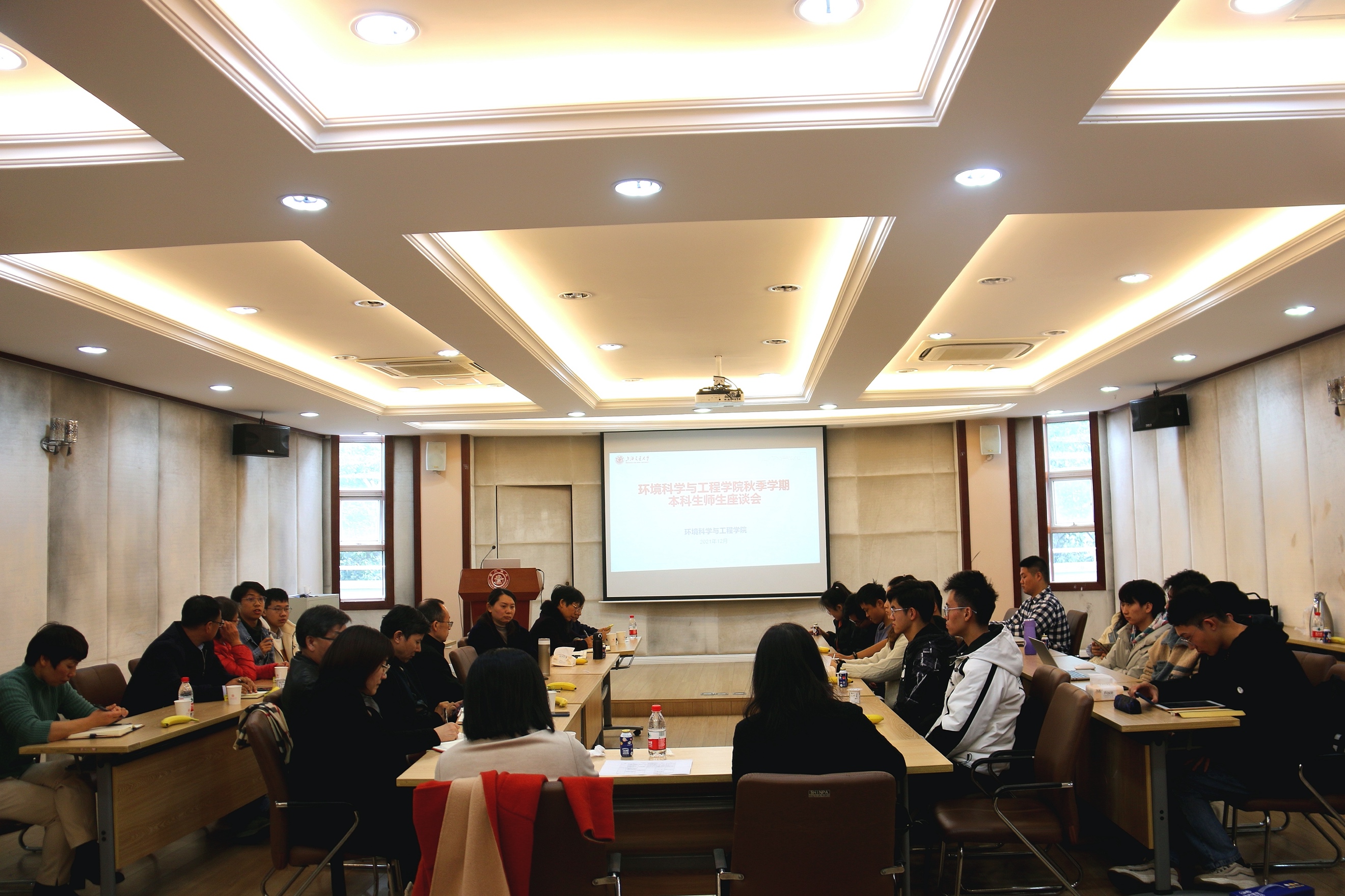 刘萍首先感谢师生对学院本科教学工作的支持,并简要介绍了本学期课程开设情况以及问卷调查反馈情况。在轻松愉快的氛围中,各年级学生代表结合本学期课程开设情况,从不同角度提出意见和看法,从平台班课程设置衔接度到专业课程学分设置、具体课程的作业布置情况等提出了诸多意见建议。与会老师对问题逐一作出解答,并针对典型问题做了深入的讨论和交流。《土壤污染控制与修复工程》任课老师曹心德表示,本次座谈会师生双方从各自角度对问题进行交流探讨,加强了师生之间的沟通,让老师了解到学生的需求,与此同时使学生明白部分教学内容设置的合理性,之后会多从学生角度考虑,更具针对性地进行课程重点讲解以及完备平时作业内容。